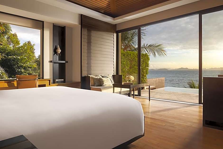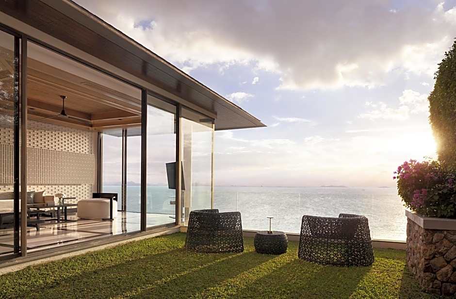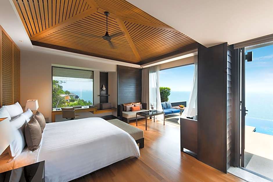 Located at level 1. Features a private 33 foot infinity plunge pool and a private balcony with views of the Gulf of Thailand.